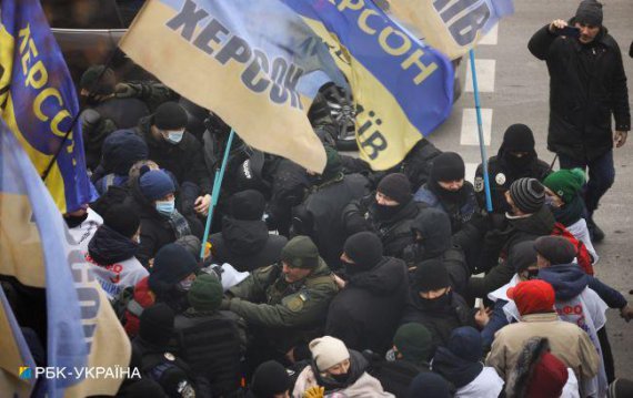 Під час протесту стались сутички між силовиками та мітингарями, повідомило "РБК-Україна".