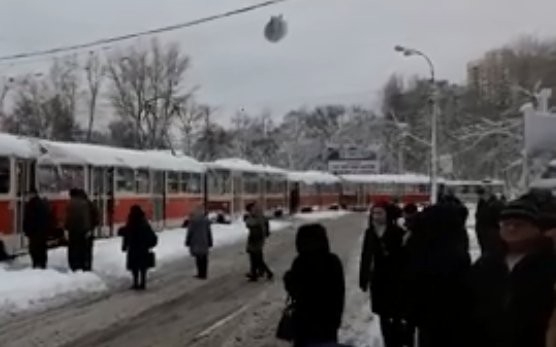 У Києві через складні погодні умови з'єднали між собою трамваї та відправили в відстійник.