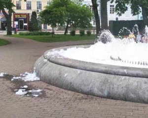 У фонтан на Контрактовій площі невідомі налили миючий засіб, повідомляє КМДА.