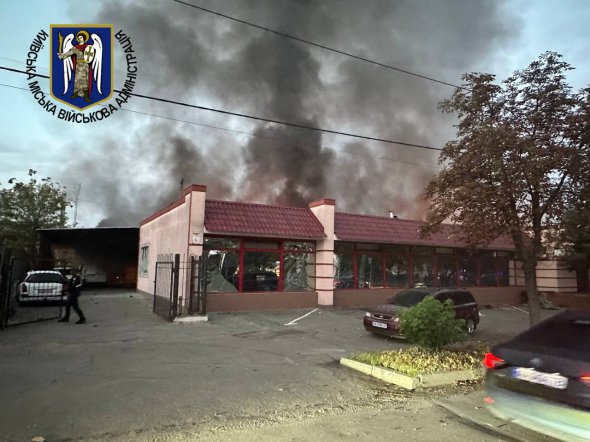 Також впали на станцію технічного обслуговування, виникла пожежа на площі 400 м2, загорілися припарковані автомобілі.