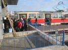 Щоб зайти до потяга, потрібно проштовхнутись через натовп пасажирів. Станція запрацювала 26 жовтня, паралельно з лінію нового швидкісного трамваю.