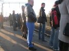 8 листопада о 6:50 на платформі чекають потяг близько 300 людей. Люди кутаються в шарфи та шапки. Платформа з усіх сторін продувається вітром. Поруч - перехід до кінцевої зупинки швидкісного трамваю. Біля його опор екскаватор розгортає пісок.