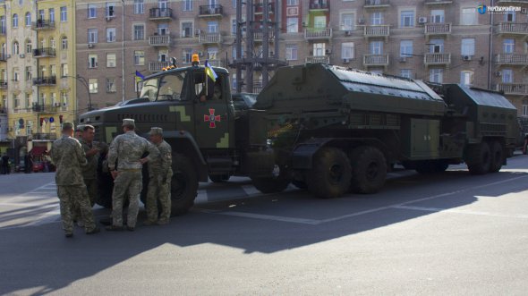У Києві пройшла репетиція параду до Дня Незалежності. Хрещатиком рухалися колони військової техніки. У репетиції взяли участь танки, самохідні артилерійські установки, бронемашини, БТРи та багато іншої техніки.