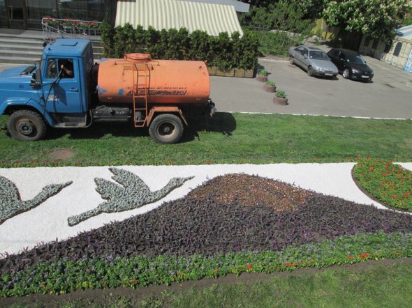 "На клумбі зображені символи Японії: сонце ,гора Фудзіяма та символом довголіття та вірності - лелеки", - написано у повідомленні.