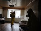 Санітарну обробку приміщень гуртожитку провели 17 березня працівники відділення радіаційного та хімічного захисту аварійно-рятувального загону спеціального призначення Головного управління ДСНС України у м.Києві спільно з відділенням Київської аварійно-рятувальної служби КМДА.