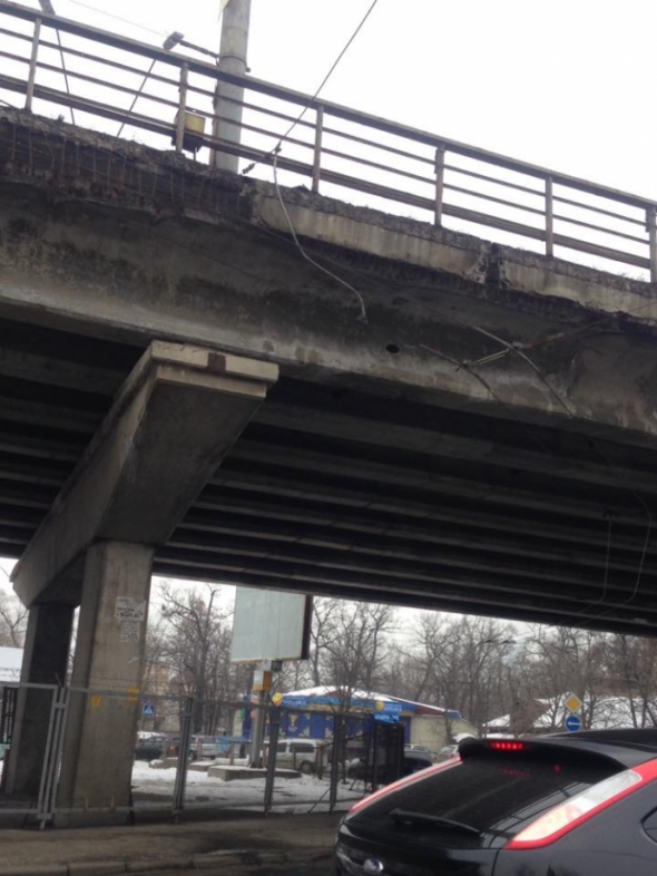 "Ось так, до речі, виглядає шляхопровід на Нивках. Початок його ремонту анонсували на лютий, роботи так і не почалися", - написав киянин Юрій Онищенко.