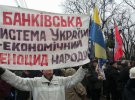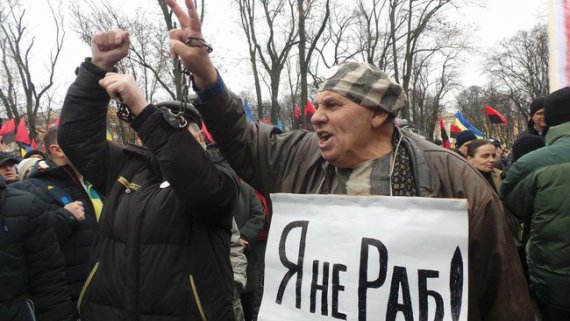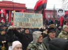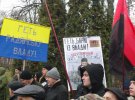 У руках в людей плакати "Імпічмент замість революцій", "Потрох смердячий паля вже загострена", "Ганьба баригам".