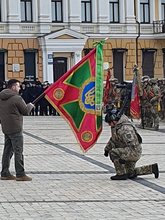 На площі присутній президент Володимир Зеленський, головнокомандувач Збройними силами України генерал Валерій Залужний та військові.