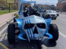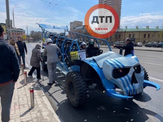 На кадрах видно, що салон транспорту відкритий, передня частина зроблена у вигляді черепа. Пасажирам видають захисні шоломи.