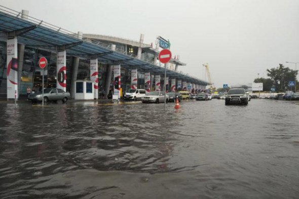 Злива повністю затопила площу перед внутрішнім і міжнародним терміналами A і D в аеропорту "Київ".