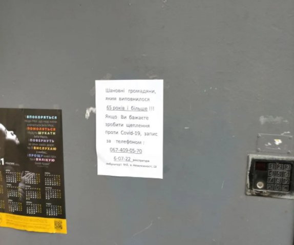 "Шановні громадяни, яким виповнилося 65 років і більше. Якщо ви бажаєте зробити щеплення від Covid-19, то звертайтеся в реєстратуру амбулаторії №2", – ідеться в тексті оголошення.