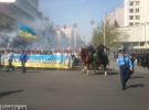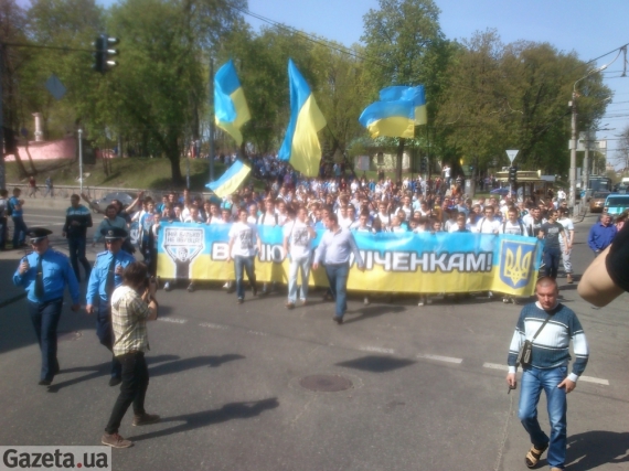 Фанати зібрались о 14:00 у парку та пройшлись вулицею Горького та Івана Щорса до прокуратури. Більшість з них - вболівальники столичного "Динамо" та дніпропетровського "Дніпра". Сьогодні на НСК "Олімпійський" має відбутися черговий тур чемпіонату України між командами.