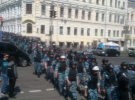 Кілька сотень "беркутівців" та відділення кінної міліції охороняли сьогодні марш футбольних фанатів у центрі Києва. Учасники акції пройшлись по маршруту від парку імені Т. Г. Шевченка до вулиці Предславинської, де розташоване столичне управління прокуратури.