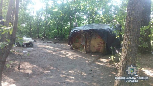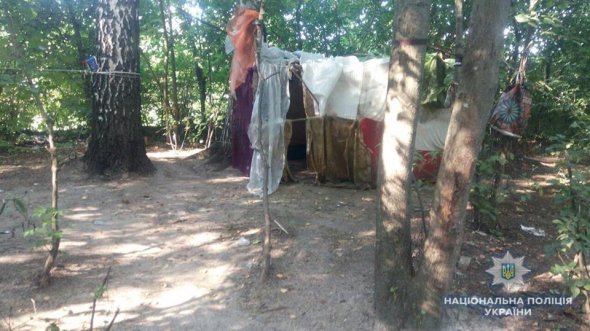 45-річна жінка та 2 дітей мешкали в лісі у Броварському районі Київщини. За житло слугував саморобний намет біля залізничної колії станції Заворичі.