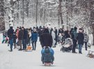 Київ та область 2-й тиждень поспіль у сніговому полоні. Дороги та тротуари продовжують нагадувати квест. За минулу добу лише зі столиці вивезли понад 13,5 тис. т снігу. Та попри гігантські замети, люди не відмовляють собі у зимових розвагах.