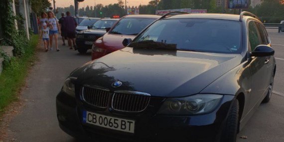 На знімку можна побачити, що поряд припарковано багато автомобілів, які теж займають пішохідну зону, проте не так заважають людям.