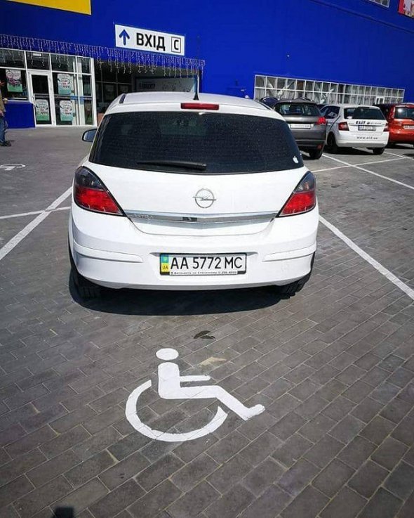 Один водій залишив свою машину на місцях, зарезервованих для інвалідів, написали на Facebook сторінці dtp.kiev.ua.