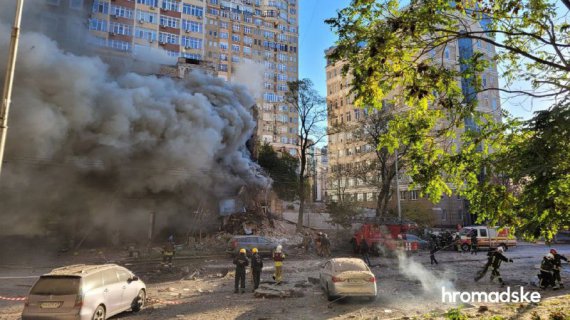 Gazeta.ua зібрала фото наслідків ранкових ударів безпілотними по мирній українській столиці.