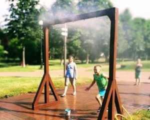У парках Києва почали встановлювати охолоджувальні рамки з розпилювачами води. Цього літа їх облаштують понад 20.