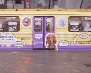 У столичному метро курсує "потяг добра", на якому розміщені зображення безпритульних тварин.