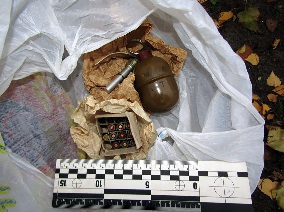 "Поліцейські помітили підозрілого чоловіка. Зупинивши його для перевірки, правоохоронці виявили в кульку бойову гранату і набої", - йдеться у повідомленні.