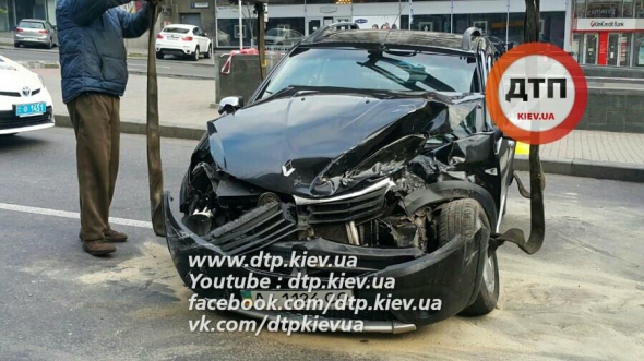 "Співробітник посольства Азербайджану намагався на швидкості повернути з Хрещатика на вулицю Шевченка. Вилетів на тротуар, простягнув за собою сфери і вилетів на зустрічну смугу, де протаранив Рено і зачепив Тойоту" - йдеться у повідомленні.