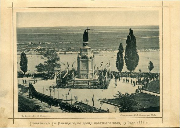 У 1888 році під час святкування на Володимирській гірці місцевими жителями 900-річчя хрещення Русі сталася трагічна подія. Київський генерал-губернатор Олександр Дрентельн, проїжджаючи перед військами на верхній терасі Володимирської гірки, раптово впав із коня і помер. Тоді лікарі констатували смерть від апоплексичного удару.