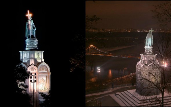 Наприкінці ХІХ століття в хрест пам'ятника вмонтували ілюмінаційні лампи, які служили свого роду маяком для пропливаючих по Дніпру пароходів. Відтоді щоночі хрест яскраво сяє на тлі темного неба.