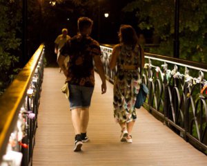 Нове освітлення з'явилося на Парковому мосту, відомому як Міст закоханих. Він з'єднує Міський сад і Хрещатий парк.