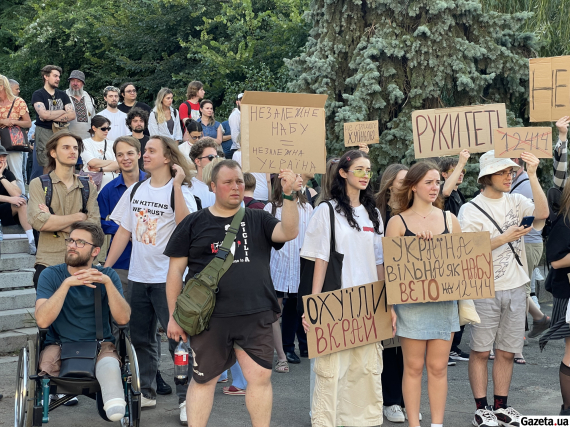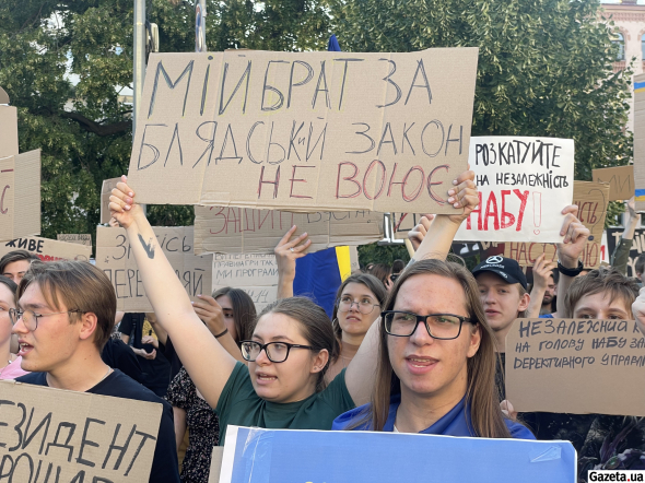 Схожі протести відбуваються у Львові, Дніпрі, Одесі та інших містах України. Учасники виступають із вимогами скасувати закон, який, за заявами НАБУ, САП і правозахисних організацій, обмежує незалежність антикорупційних інституцій.