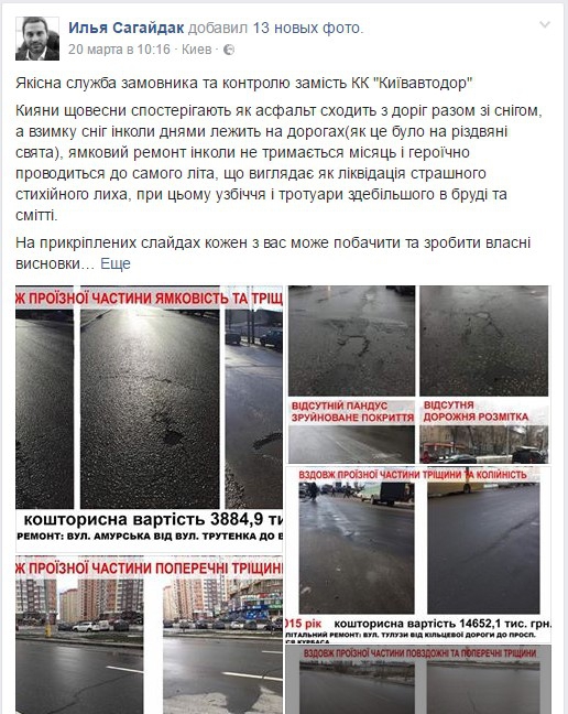 Раніше заступник голови Київської міської держадміністрації Ілля Сагайдак повідомляв у своєму Фейбуці про чисельні зловживання у КК "Київавтодор".