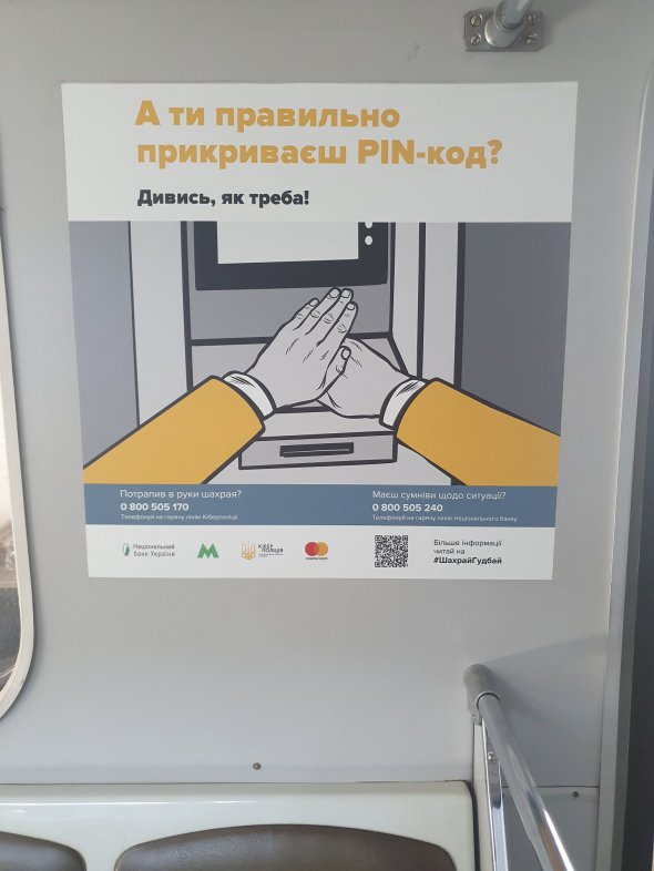 "Поїзд #ШахрайГудбай нагадує нікому не повідомляти пін-код своєї картки, не піддаватись на емоції та не відправляти кошти незнайомцям. Важливі поради, розміщені на інформаційних матеріалах, курсуватимуть в метро до кінця серпня", – йдеться в повідомленні.