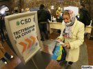 Біля столу, де проводять тести, у чоловіка просять документ для підтвердження особи. Аналіз буде готовий за пів години, пояснюють.