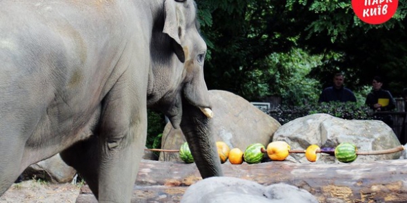 У Київському зоопарку слона Хораса пригостили вегетаріанським "люля-кебабом".