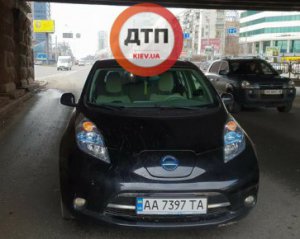 "Стоїть собі на світлофорі в центрі Києва адвокат на екологічному електрокарі Nissan Leaf, як раптом зверху падає важка спадщина комуністичного минулого - елементи втомленого Повітрофлотського шляхопроводу", - йдеться в публікації.