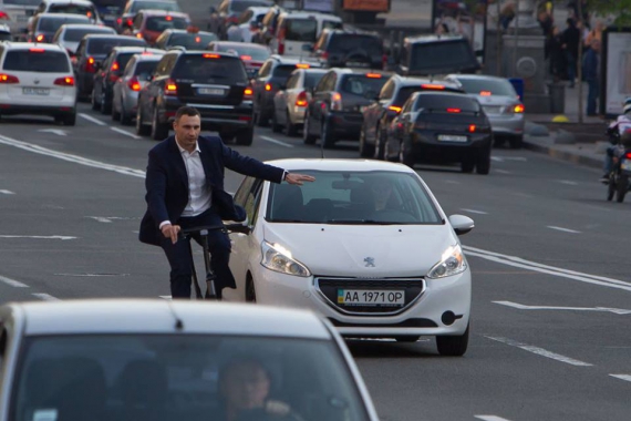 "Вирішив на роботу і у справах в центральній частині міста їздити на велосипеді. І вже кілька днів кручу педалі не тільки під час ранкового тренування. По-перше: зручно та швидко в київських пробках. По-друге: корисно для здоров'я, бо активно пересуваєшся. З мінусів - не всі автомобілісти поводяться коректно на дорозі по відношенню до велосипедистів. Доводиться оперативно проводити роз'яснювальну роботу", - написав Кличко.