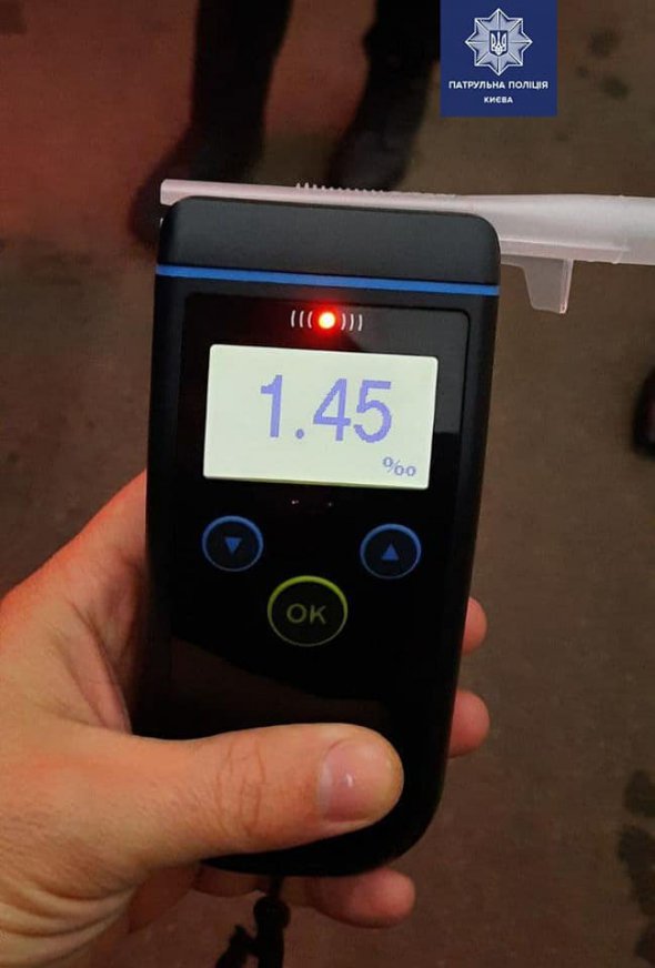 "Результат позитивний — 1,45 проміле, що більш як у 7 разів перевищує дозволений рівень", - додали в повідомленні.