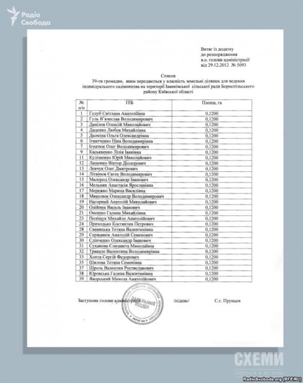 Усього список складався з 39 осіб, які безкоштовно отримали 12 соток у Іванкові.