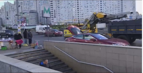 У Києві перехожі зняли на відео літнього чоловіка в елітній іномарці Tesla, який продавав мед поблизу станції метро Осокорки.
