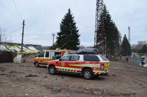 Також тривають роботи з розбору завалів навчально-спортивного центру "Чернігів" та 9-поверхового житлового будинку. На місці працює зведений загін ДСНС.