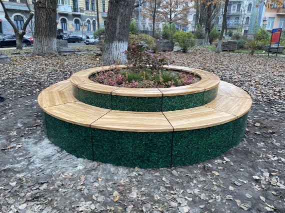 У Сквері інтелігентів на розі вул. Велика Житомирська та Гончара в Києві встановили 2 лави з перероблених пластикових кришок.