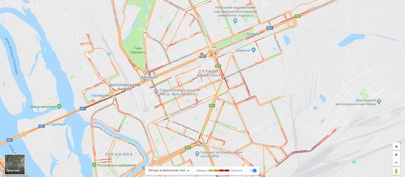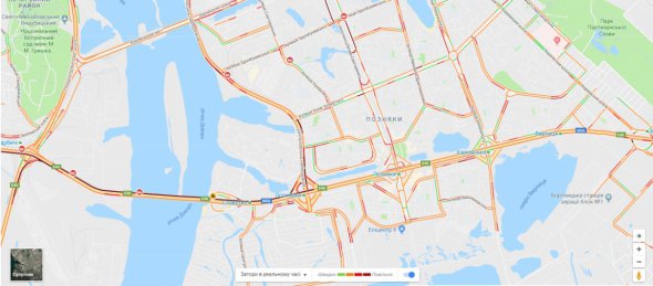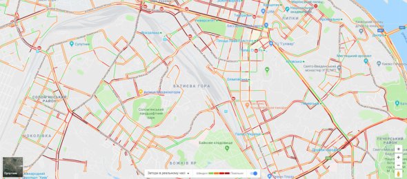 У заторах стоїть майже весь правий берег. Обмежений рух по вул. Вадима Гетьмана від метро Шулявська до вул. Польової.