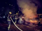 У дворі столичної багатоповерхівки на просп. Героїв Сталінграда, 41 згоріли 3 автівки. Пожежа сталася в ніч на 15 квітня.