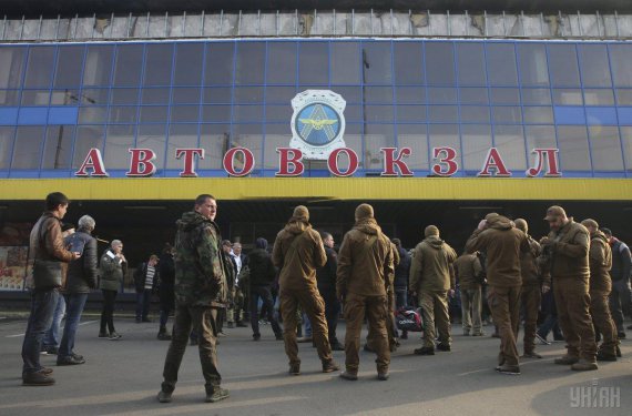 У Києві на центральному автовокзалі активісти праворадикальної організації С14 зібралися на акцію проти перевізників.