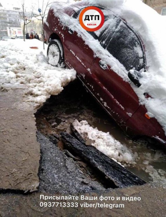 "Труби втомились. Жесть в Києві, машина провалилась під землю. Рядом нікого", - пише dtp.kiev.ua в Facebook.