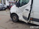 Водій автомобіля Renault Master виїжджав з дороги на трамвайні рейки і не пропустив автомобіль Renault Kangoo. В результаті зіткнення обидві машини вилетіли на тротуар. Renault Master збив літнього чоловіка 65-70 років.