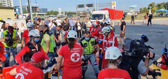 За сценарієм, патрульна поліція та інші екстрені служби відпрацьовують ситуацію зіткнення маршрутного таксі з бензовозом із подальшим загорянням та евакуацією людей.