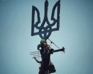 У Києві до Дня Державного Прапора й 30-річчя незалежності України встановили новий тризуб на флагштоку найбільшого державного прапора.