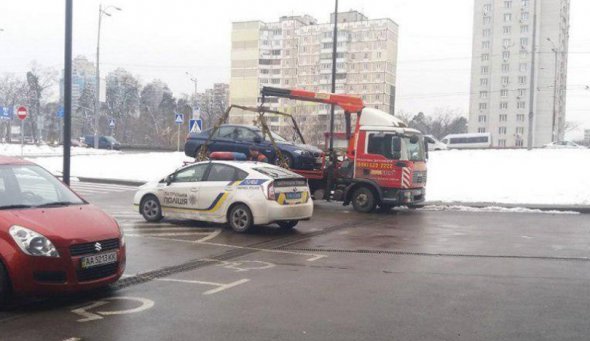 У Святошинському районі столиці евакуатор забрав автомобіль водія, який припаркувався на місці для інвалідів.