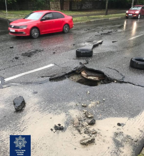 "На просп. Правди руйнування дорожнього покриття. Рух обмежений із боку вул. Ярослава Івашкевича в напрямку просп. Правди. Патрульні організували об'їзд вул. Вишгородською", - ідеться в повідомленні.